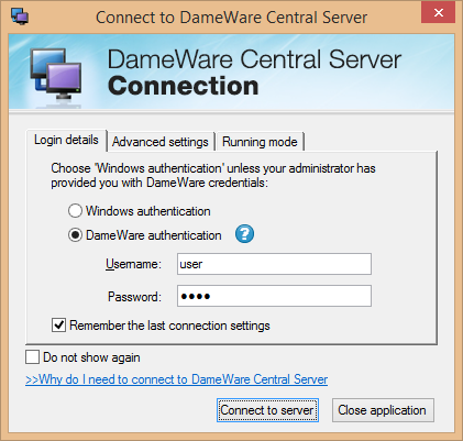 Connect to a computer using Dameware Remote Support