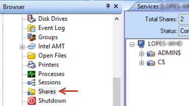 | View the shares associated with a machine | Browse the machine, and double-click Shares.