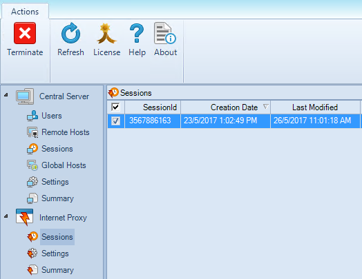 You can view Internet Session details, such as who opened the session, how long the session has been open, and view the connected host. Session details vary depending on which type of session you view. If you work in a large organization and have many technicians using Dameware, it is helpful to know who has active Internet Sessions open. For example, there can be times when Internet Sessions do not terminate successfully, and you are required to manually terminate the session on the Session page.
