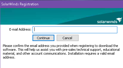 As the installation progresses, a dialog box opens, prompting you to enter an email address. If you do not enter an email address, the installation does not complete.