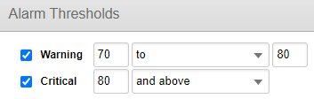 If you enable both the Warning and Critical threshold levels, enter the same value at the intersection of the two levels (as you would with thresholds for default metrics).