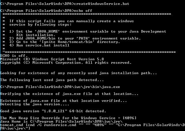 C:\Program Files\SolarWinds\DPA\createWindowsService.bat