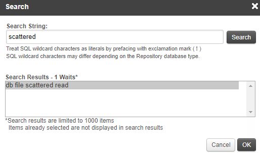 scattered), and click Search.The Search Results section lists all waits that match your search criteria.