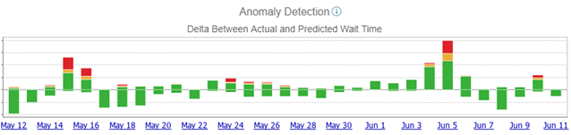 DPA uses an anomaly detection algorithm to identify unexpected increases in wait time. During certain time periods, high wait times might be normal. DPA uses historical data to "learn" what normal is and makes predictions based on this data. When wait times for a time period are significantly higher than expected, DPA reports an anomaly.