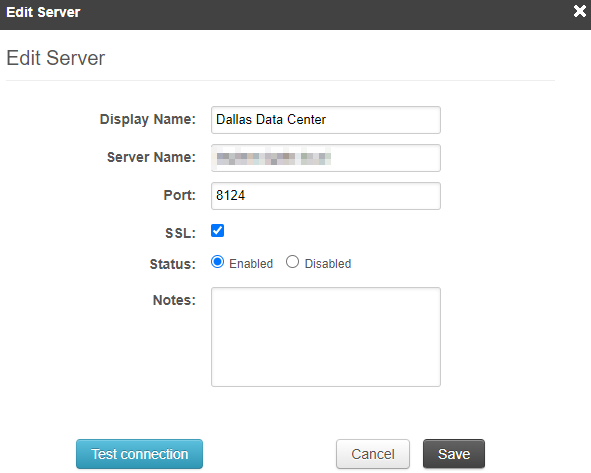 In the Registered Servers list, click the server's display name to open the Edit Server dialog.