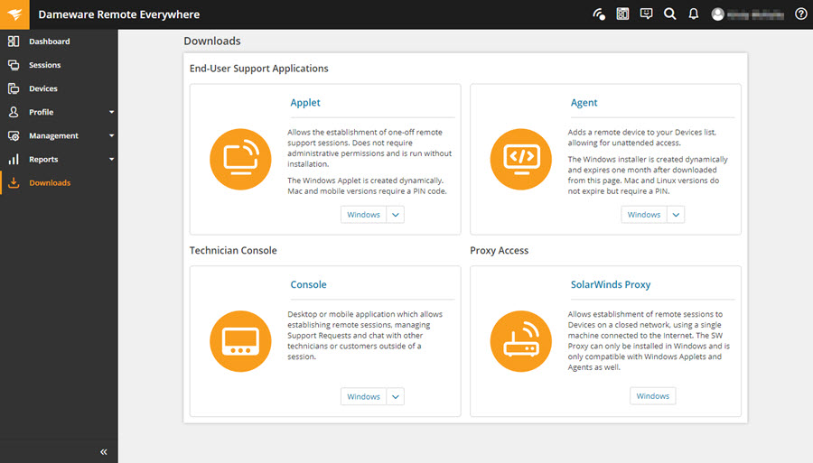 DRE is a cloud product that consists of the Admin Area, which can be accessed from the browser, and its downloaded components: the Agent, Applet, and Console. The Admin Area can be accessed immediately, but the other components must be installed.