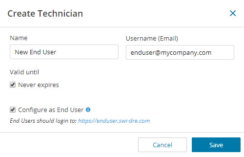 Add a technician to your account and configure them as an end user