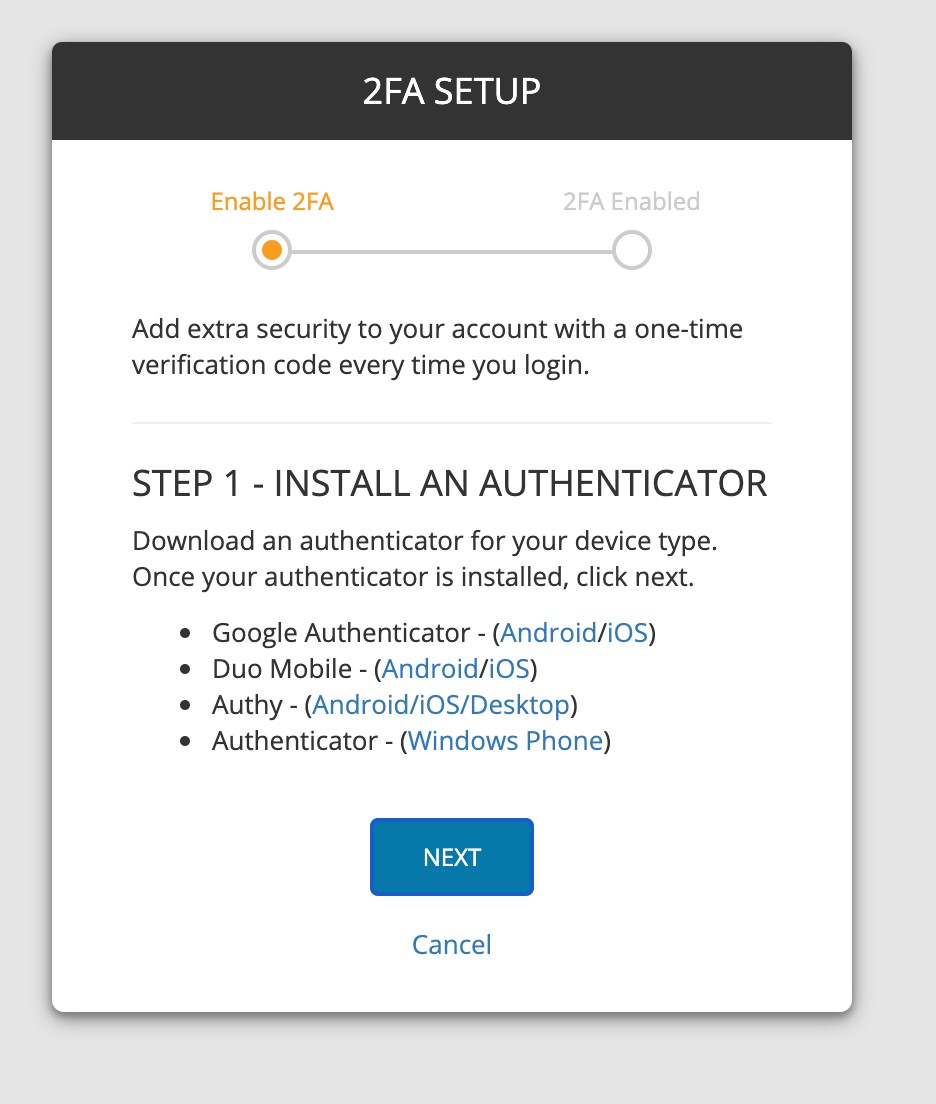 - Choose an authenticator for your device type and download. This app will be used as part of your login process, so make sure you install it on a device you have consistent access to.. After the download is complete, click Next.