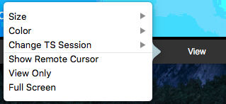 Navigate to the Mac Viewer's Remote Desktop tab to change the size or color settings of the remote device. You can also access the Terminal Services option, show the remote cursor, or switch to view only or full screen mode.