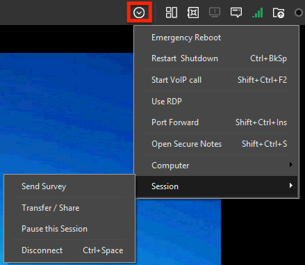 to view the Advanced menu and select Session to access features needed to manage your current support session.