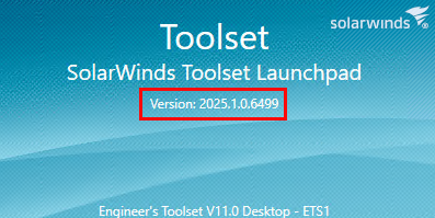 Locate the version number just below SolarWinds Toolset Launchpad.