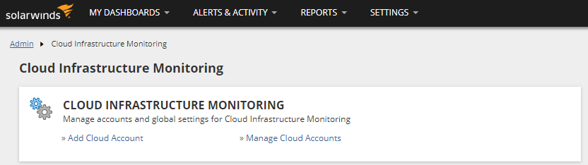 - Click on the Cloud Infrastructure Monitoring Settings link in the upper right corner.