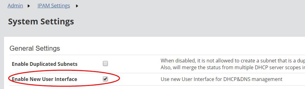 - On the System Settings page, uncheck the Enable New User Interface box to use the legacy version. To return to the new version at any time, check this box.
