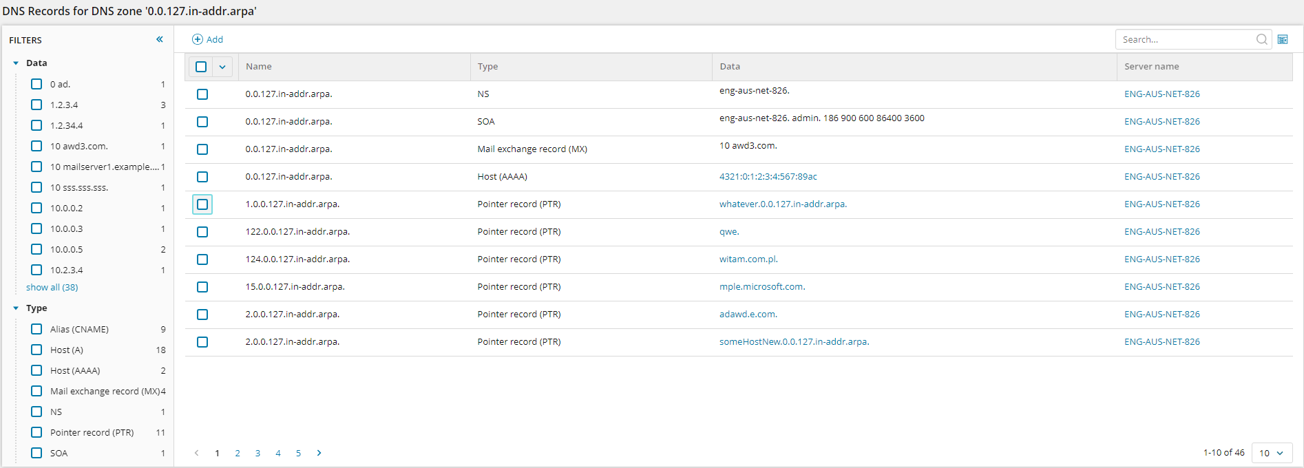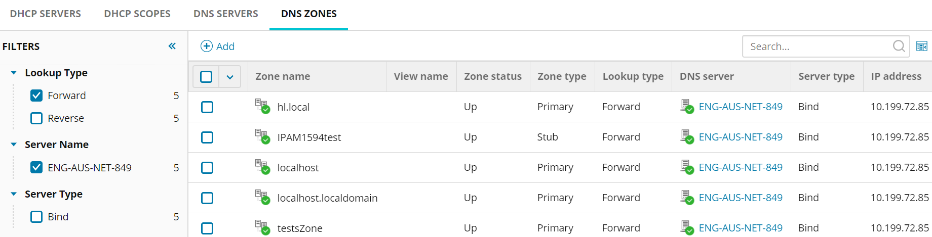 - Click on DNS Zones and use the filters on the left to find the required zone.