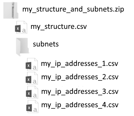 Structure and IP Addresses: Select of you have zipped the structure spreadsheet with associated IP address spreadsheets in a sub-directory (see above).