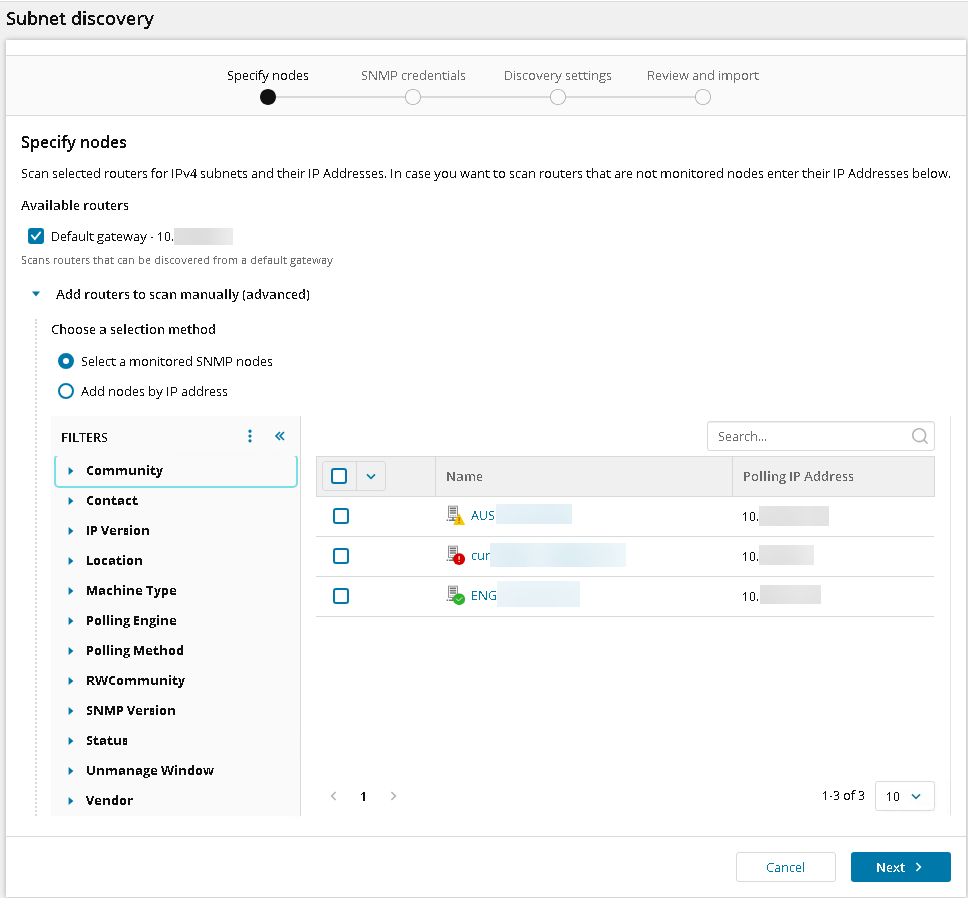 - Select Discover routers & poll subnets and IP addresses from them, and click Next.