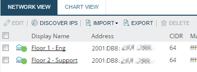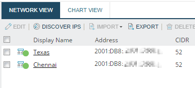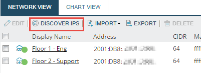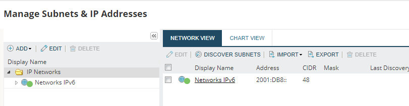 IPAM lets you add IPv6 (Internet Protocol version 6) sites to subnets to be monitored. Use the Discover IPs functionality to automatically add existing IP addresses to subnets.