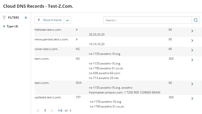 - Click a domain name to display the Cloud DNS Records page for that domain.