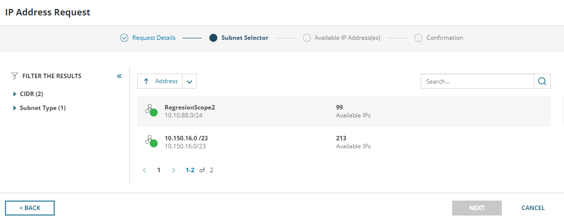 - If you selected Yes in Step 3, the Subnet Selector page is displayed.