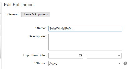 - Open Administration - Catalog Management - Entitlements and click New.