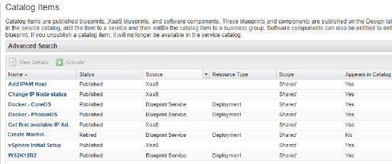 - In the Catalog Items grid, select the blueprint you created, and activate it.