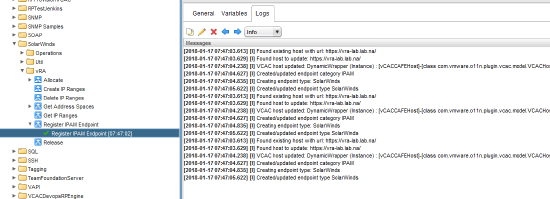- Open Design > Workflows > Library > SolarWinds > vRAM, and run Register IPAM Endpoint.