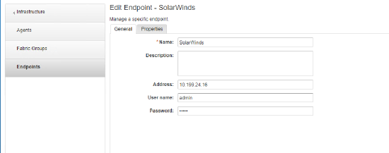 - Define Name, and select SolarWinds in the IPAM endpoint combo box.