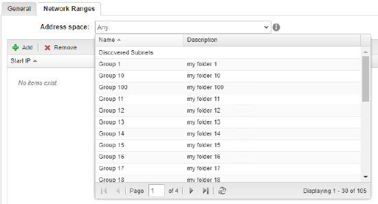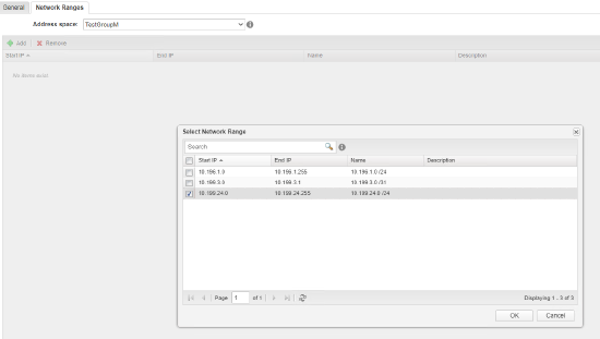 - Open Network Ranges tab, and select Address Space,