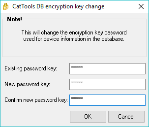 - Go to File > CatTools database, and select Change encryption password.