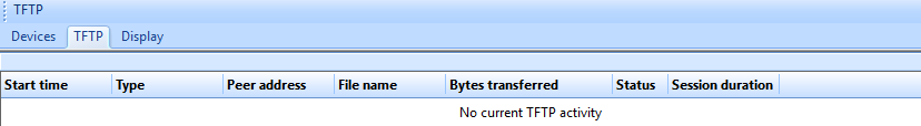 The TFTP pane enables you to view messages originating from the CatTools TFTP server. You can also stop or start the TFTP server from this tab.