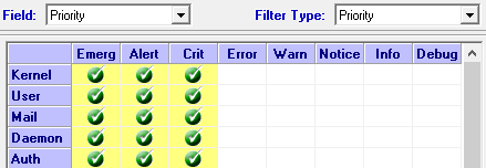 If a rule does not contain a Priority filter, the Kiwi Syslog Server includes all priorities.