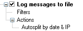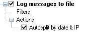 - Change the default email file name. Use AutoSplit variables, selected from the Insert AutoSplit value menu, to create separate log files based on the date and the IP address of the sending device. For this example, the file name is