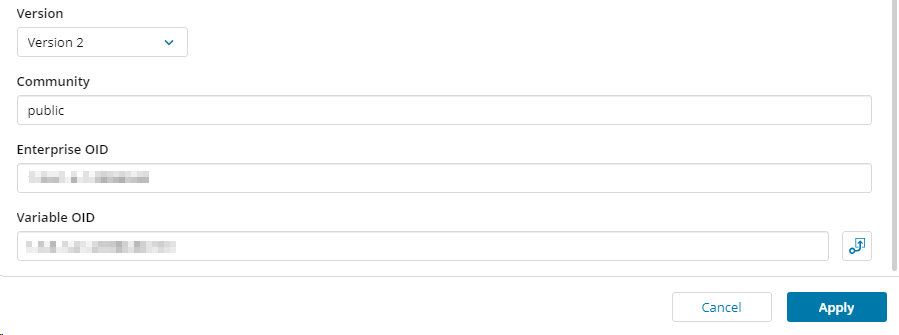 - If you select version 2, specify the Community, Enterprise OID, and Variable OID options.