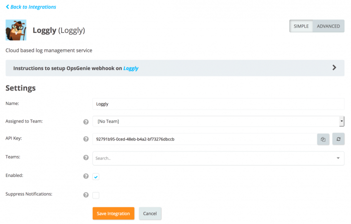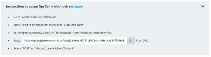 - Go to the OpsGenie Loggly Integration page.