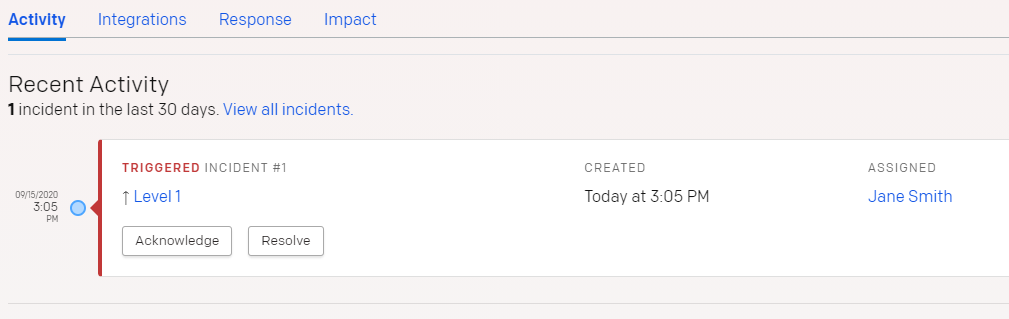 To test your new alert, generate some logs that can trigger your alert. Wait a few minutes for the alert to run, and then check your PagerDuty account's activity page for this configured service.