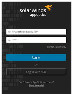 If your company uses SSO/SAML to manage user accounts and has enabled SAML for SolarWinds Application Management products, then you will need to log in with SSO.