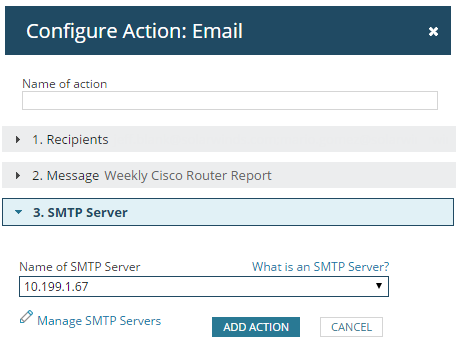 - Enter the recipients, a message, and the SMTP Server information to configure the email.