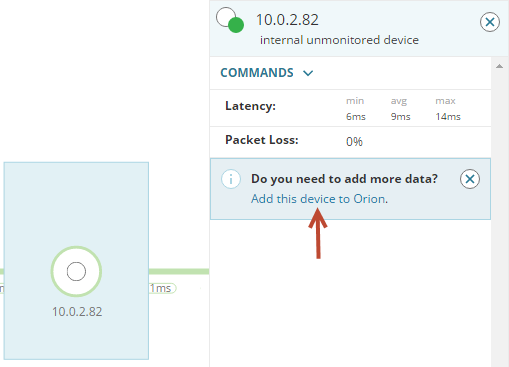- If you are not monitoring internal nodes on the path, you can add them. See the Monitor nodes on a path section below. In this example, the system is not monitoring node 10.0.2.82.