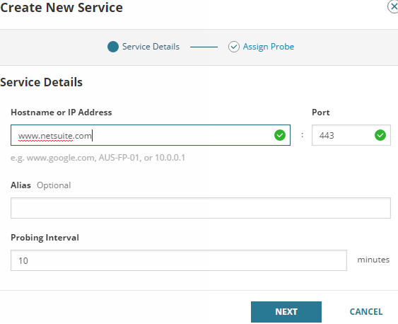 Before you can monitor, you must first create a new service path. This example creates a path to NetSuite.