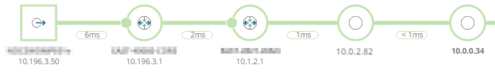 - If you are already monitoring internal nodes on the path, you see data about the nodes. In this example, nodes 10.196.3.50 and 10.1.2.1 are monitored.