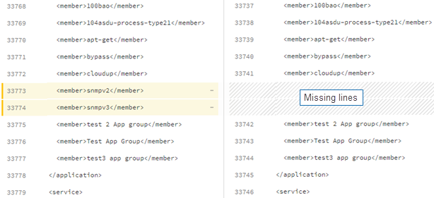 - Policies that are pushed from a Panorama management server are not part of the main configuration file. Therefore, these elements are not included in the comparison.