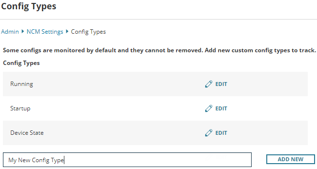 Enter a unique name in the box at the bottom of the list, and click Add New. The config type is added to the list, with Edit and Remove options available.