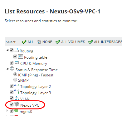 If you don't want to monitor all interfaces on the device, select at least the interfaces displayed for the vPC on the vPCs subview.