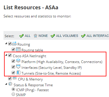 2. Expand Cisco ASA NetInsight, and select to enable the pollers.