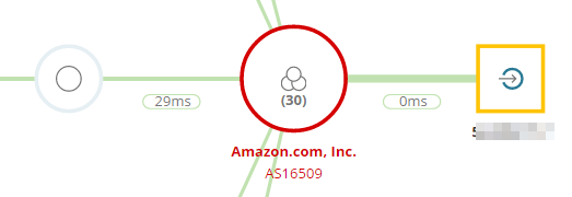 - The problem is in Amazon's network. Click the red Amazon node to expand it.