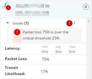 - Expand the Issues section to see that packet loss is over the critical threshold, and that it is 17% likely that transit passed through this link.
