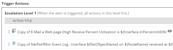 - On Trigger Actions, create actions to execute when the software triggers the alert.