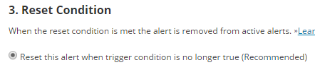 - On Reset Condition, define the conditions for resetting the alert.