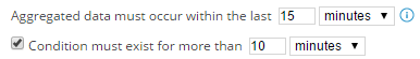 - To allow traffic to fluctuate and delay triggering the alert, select Condition must exist for... and adjust the number of seconds for which the condition exists.