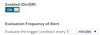 - Adjust the alert properties if necessary. Under Enabled, turn the alert On and select how often the trigger condition should be evaluated.